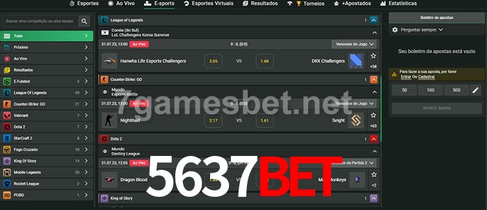 O 5637Bet oferece uma grande seleção de opções de apostas em e-sports com probabilidades competitivas
